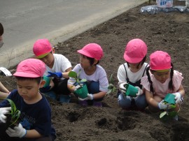 たんぽぽ組・ゆり組・ひまわり組で園の菜園に