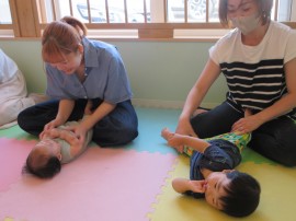 保育者からいくつかふれあい遊びを教えてもらいました。