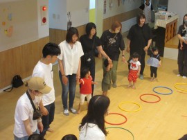 親子で「しっぽ取り」や「フープ取り」を