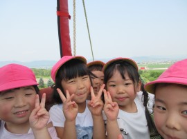 永山おおぞら認定こども園 熱気球搭乗体験会 2024年7月11日(木) あさっぴーの気球に乗ってきました✨ひまわり組さんは、前日からとっても楽しみにしていました😊当日はバスに乗って行き、大きな気球をみると「大きい😃」「怖い~😱」「乗りた~い😄」わくわく、どきどき💕 「すごーい!たか~い✨」 喜んでいました😊 もどる