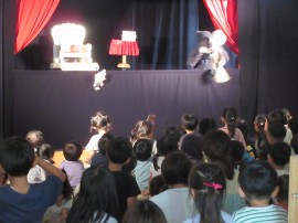 人形劇では、子どもたちが助ける場面やクイズに |