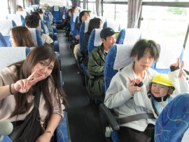 大きなバスにお父さん、お母さんと一緒に乗って、