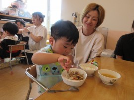 給食の様子もみてもらいました😊 |